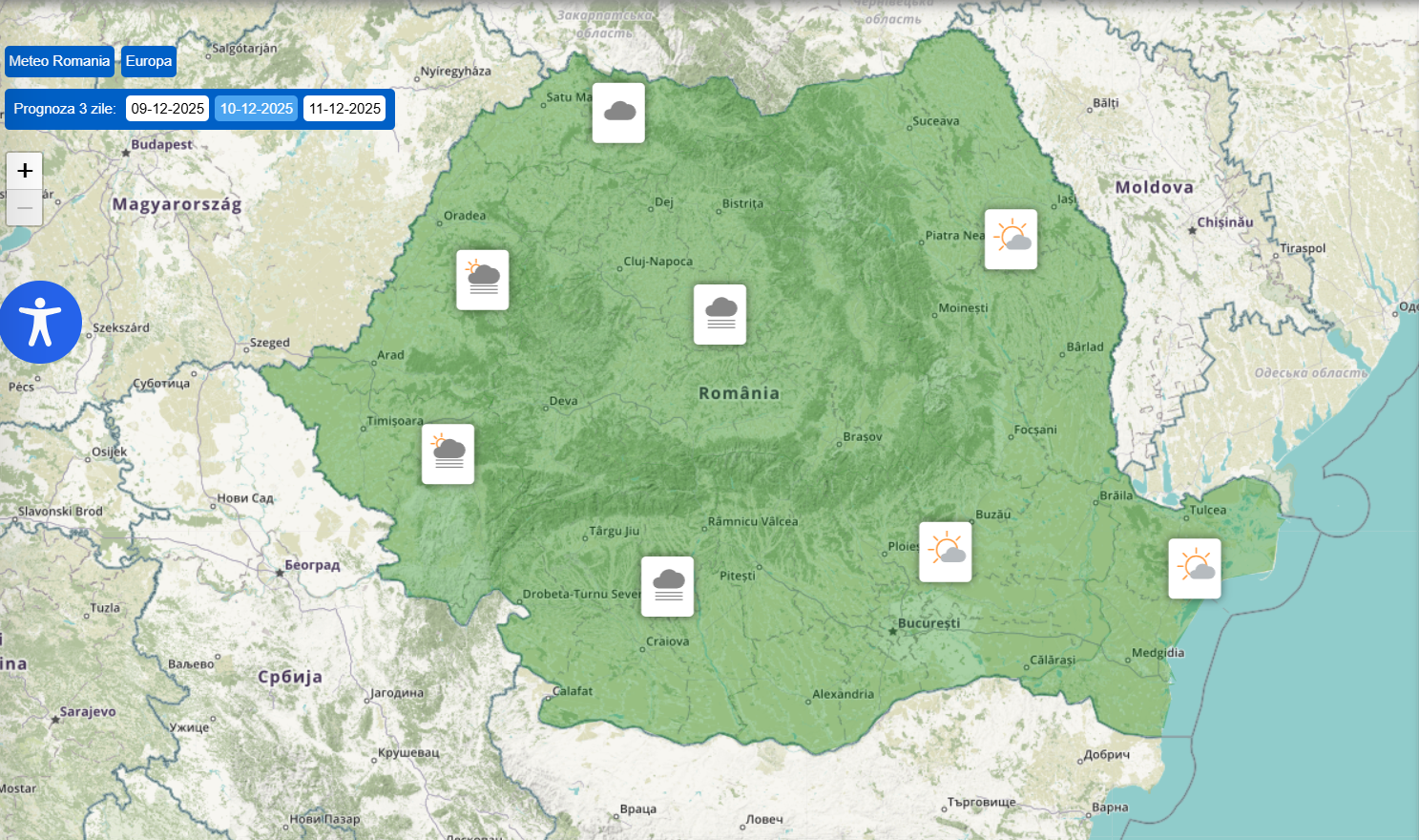 Moldova va avea parte de o zi rece, umedă și predominant înnorată. În unele zone sunt posibile ploi slabe sau ceață densă în orele dimineții și serii. Temperaturile diurne vor fi cuprinse între 6–9°C, iar minimele nocturne între 2–5°C. Vântul poate accentua senzația de frig în nordul extrem.