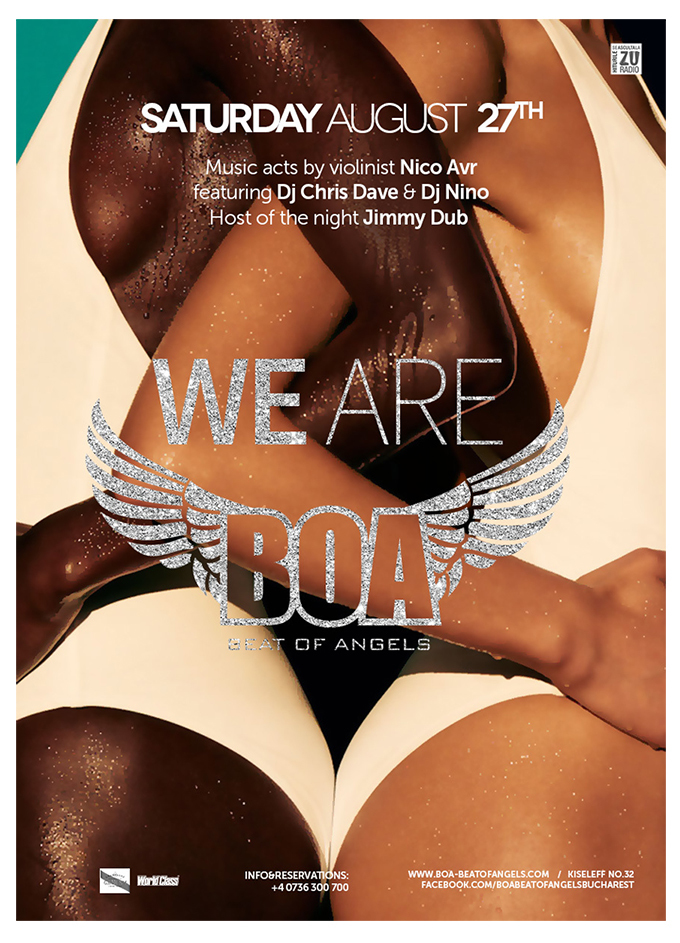 Clubul Beat of Angels (BOA) s-a născut din dorinţa de a aduce un nou suflu pe scena cluburilor din Bucureşti. Artizanul acestui proiect susţinut de o echipă de profesionişti cu o vastă experienţă în managementul cluburilor şi al restaurantelor, dar mai ales în marketing, şi-a impus ridicarea stachetei în ceea ce înseamnă excelenţă în servicii şi entertainment. Atributele clubului sunt atmosfera incredibilă sustinuţă de ospitalitate, originalitate şi siguranţă.