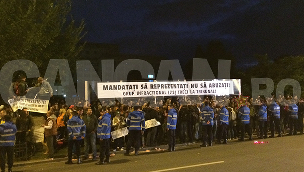 Protestatarii de la mitingul din Capitală, organizat împotriva votului dat de Camera superioară a Parlamentului privind urmărirea penală a lui Gabriel Oprea, au ocupat joi seara bulevardul din faţa Senatului, circulaţia fiind întreruptă.
