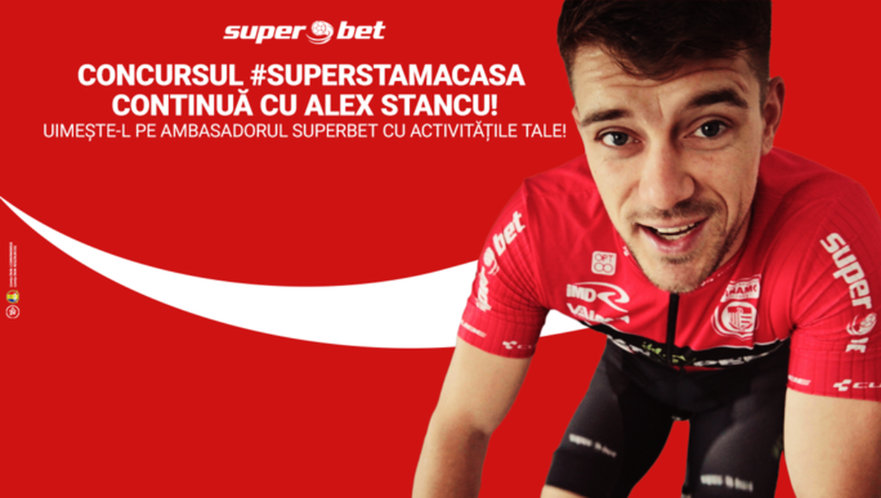 Vrei să participi la concursul #SuperStamAcasa? Sparge gheața cu SuperProvocarea lansată de ciclistul Alex Stancu. Intră pe Facebook și lasă în secțiunea comentarii a postării concursului un video cu activitățile tale din carantină. Cel mai interesant videoclip ales de tânărul ciclist va fi premiat cu un voucher de 500 de lei pentru magazinul eMag și un extra premiu de 500 de lei pe contul Superbet, dacă ești parior. Fii în ton cu distracția și arată-ne cât de bine te simți tu în timpul carantinei! Deschide aici cont la Superbet!