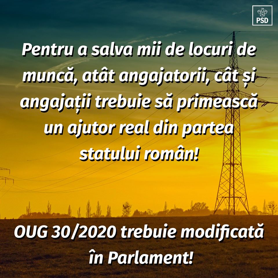 ”Măsurile economice dispuse de Guvernul Orban prin OUG 30/2020 nu sunt aplicabile unor categorii largi de firme afectate. Firmele cu mai puțin de 3 angajați, PFA-urile sau marii contributori care au anunțat că își trimit angajații în șomaj tehnic, înainte de apariția OUG. Pentru a salva mii de locuri de muncă este imperios necesar ca atât angajatorii, cât și angajații să primească un ajutor real din partea statului român! În acest sens, Partidul Social Democrat va depune o serie de amendamente la OUG 30/2020. Astfel, propunerile noastre vor viza: