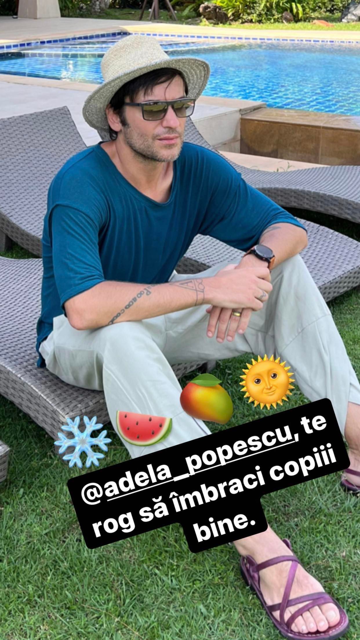 „Adela Popescu, te rog să îmbraci copiii bine”, a scris Radu pe Insta Story.