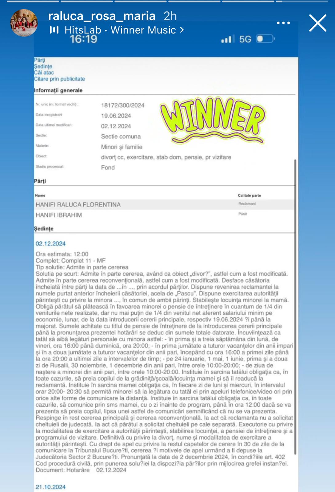 Însă, în urmă cu puțin timp, Raluca Pastramă și-a anunțat victoria în mediul online. Aceasta a postat pe contul său de Instagram decizia instanței în cazul său. Divorțul a fost pronunțat, iar domiciliul micuței a fost stabilit la mama, fapt ce i-a dat motiv de sărbătoare Ralucăi Pastramă.