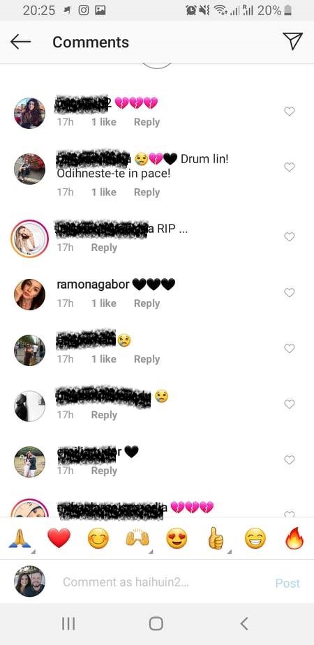 Șocată de vestea că Alex Faur nu se mai află în viață, Ramona Gabor a lăsat un mesaj cu trei emoticoane în formă de inimă neagră la ultima fotografie postată de acesta pe Instagram. Nu este însă singurul mesaj. În continuare, fanii, prietenii și persoanele care l-au apreciat își transmit regretele pe site-urile de socializare. (VEZI ȘI: VEDETELE AU ȘTERS MESAJELE CARE SOLICITAU AJUTORUL PENTRU ALEX FAUR. MOTIVUL…)