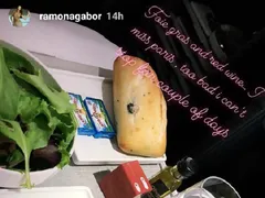 Într-o altă poză, modelul a dezvăluit cu ce s-a delectat în timpul mesei, respectiv: foie gras și vin roșu. De asemena, ea a mărtusit că: „Mi-e dor de Paris, păcat că nu pot să rămân câteva zile”. La o oră după prânz, ora României, sora Monicăi Gabor era în Aeroportul Internațional Charles de Gaulle din Paris. „Încă un zbor și ajung acasă. #obosită” e mesajul pe care l-a scris pe imaginea din aeroportul francez.