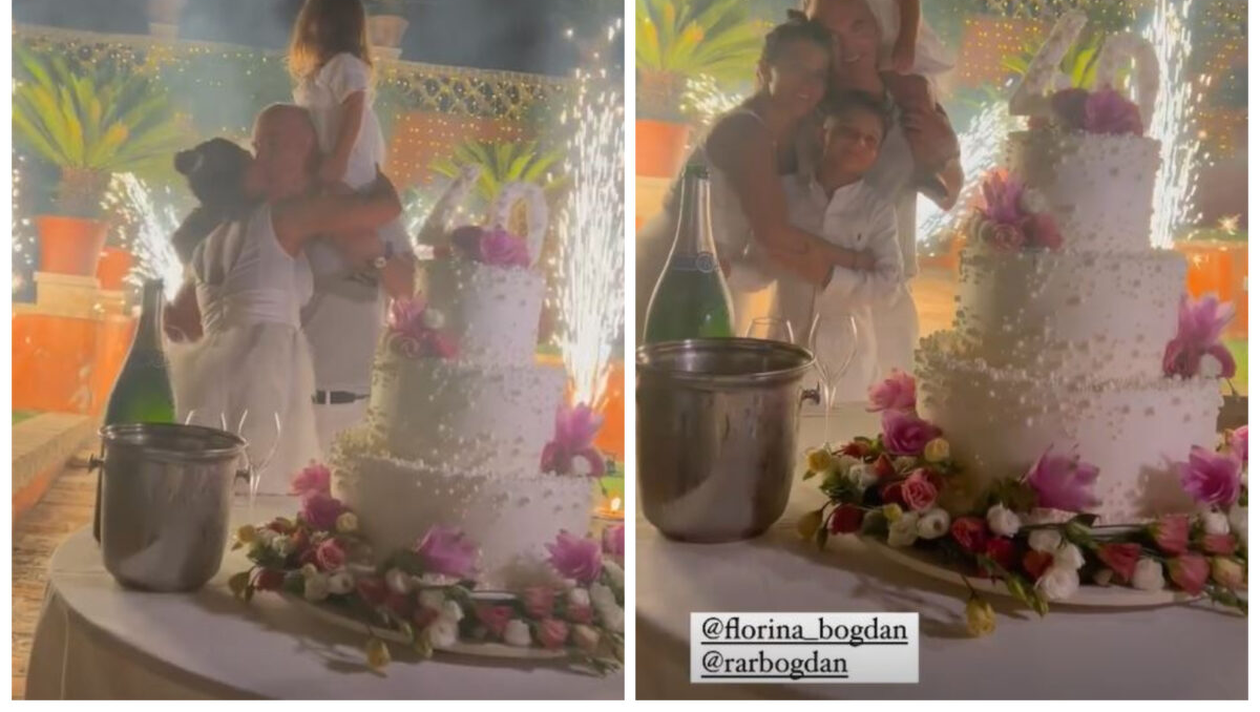 Îmbrăcată într-o rochiță albă, Florina s-a distrat alături de invitați. Însă, unul dintre momentele intense de la super-party a fost când a dansat alături de soțul ei, Rareș Bogdan! Politicianul nu a scăpat-o din ochi nicio secundă, iar pe ringul de dans a și dezmierdat-o în sărutări. Vizibil fericiți împreună, au atras toate privirile celor din jur, mai ales atunci când și-a făcut prezența si… tortul cu trei etaje!