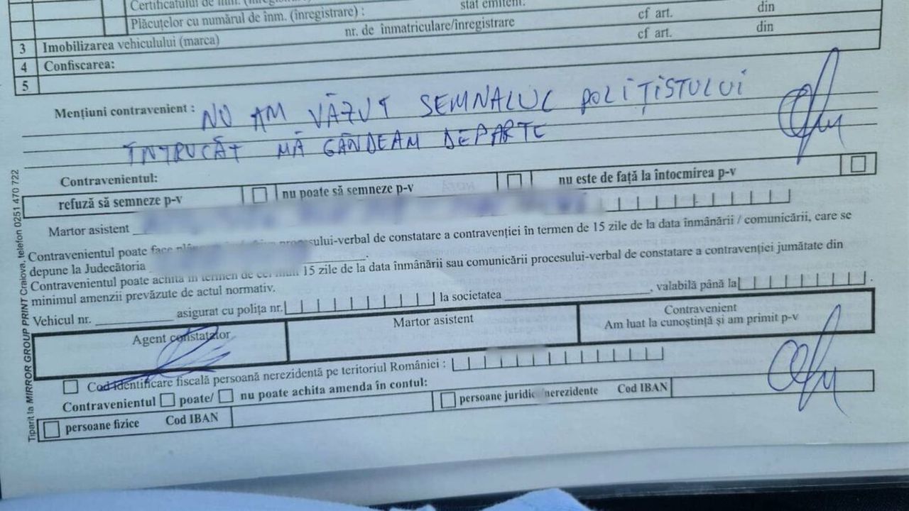 Un bărbat din Botoșani a devenit viral pe rețelele de socializare după ce a fost amendat de Poliția Rutieră. De ce? Ei bine, acesta a scris un mesaj cel puțin interesant pe procesul verbal primit.