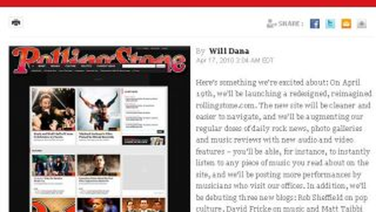 Prin aceasta initiativa, Rolling Stone a adoptat o strategie implementata si de alte titluri americane, care se bazeaza pe trecerea de la oferta integrala de continuturi gratuite la modelul mixt, care impun taxe pentru o parte din continuturile publicate pe site-uri. Potrivit lui Dana, noul site are mai multe continuturi audio si video. De asemenea, pe noua versiune a site-ului utilizatorii pot asculta toate piesele despre care se vorbeste in materialele revistei.