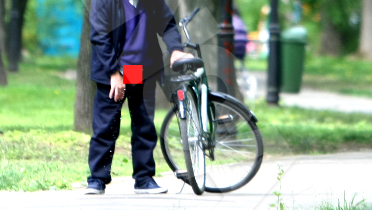 Ziua in amiaza mare, pe una din aleile parcului Herastrau, mirosul liliacului inflorit si verdele crud al primaverii au palit cand vezica domnului din imagini a simtit nevoia rapida sa se relaxeze. Batranelul s-a conformat si i-a oferit pe loc toata atentia. Ce toalete publice, ce copaci, ce tufisuri… Fara nicio jena, a inceput sa se usureze in mijlocul aleii tinandu-i paravan doar bicicleta. Cativa metri in spatele lui, o mamica isi plimba copilul intr-un carut. Oripilata de ce i-a iesit in cale, femeia bate pasul pe loc ca nu cumva sa-l deranjeze pe cel care ar fi trebuit amendat, conform legii, cu doar 200 de lei.