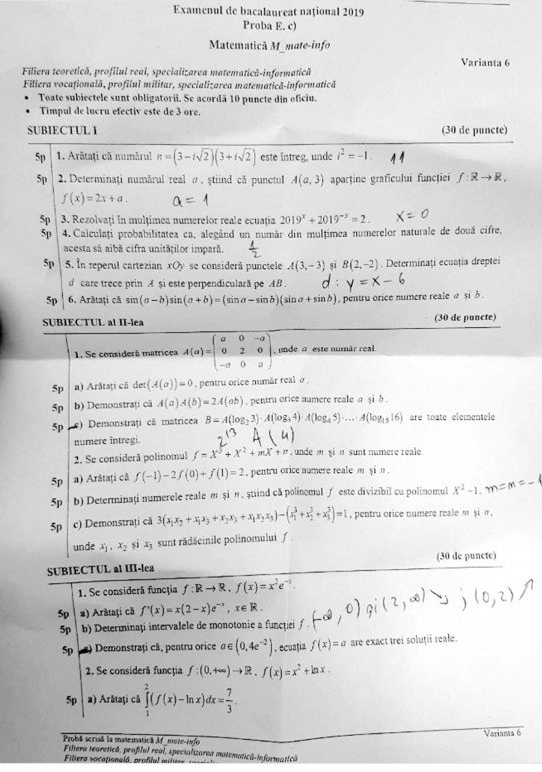 De asemenea, absolvenții de la profilul Real au avut de rezolvat exerciții pe baza unor funcții.