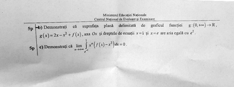 Absolvenții clasei a XII-a – de la profilul Real – au avut de rezolvat la proba la Matematică din cadrul examenului de Bacalaureat 2019, la ultimul subiect – care a avut gradul cel mai ridicat de dificultate – exerciții cu derivate și cu integrale.