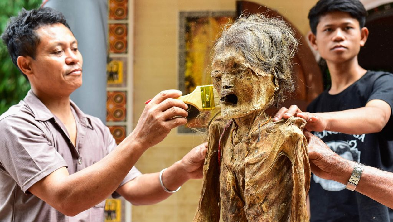 O dată la trei ani, indonezienii de pe insulă își dezgroapă morții, îi spală, îi îmbracă în haine noi, apoi stau cu ei la o țigară, înainte să-i pună din nou în sicrie și să-i îngroape la loc.