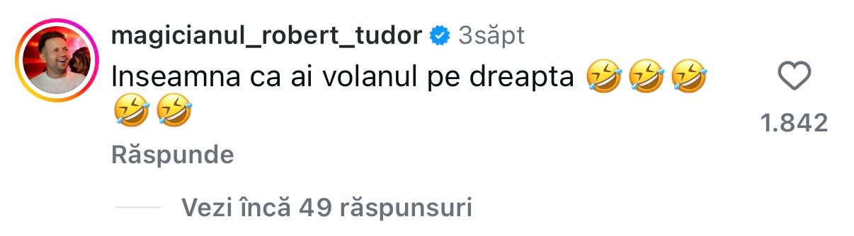 Acum este acum. Magicianul nu a stat prea mult pe gânduri și a lăsat un comentariu care a strâns aprope 2000 de aprecieri și zeci de comentarii. Noi nu știm la ce se referea Robert Tudor, dar un lucru este clar, l-a luat în vizor și pe Dani Oțil, bunul său prieten și coleg de muncă. Probabil vedeta TV nu înțelege cum prezentatorul TV a putut să își „ignore” soția care are un corp de invidiat, iar de-a lungul timpului a fost curatată de foarte mulți pretendenți. Acum o să vă dezvăluim comentariul cu pricina.
