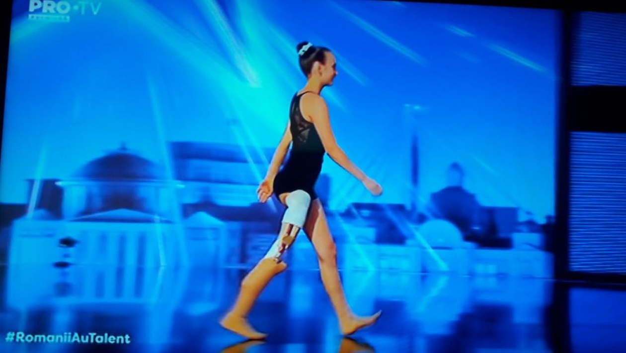 S-au scurs momente emoționante în timpul primei ediții de la “Românii au talent”, sezonul 9! O copilă de 15 ani i-a făcut pe jurații show-ului suprem de la Pro TV, dar și pe spectatorii din sală să aibă lacrimi în ochi! Ea s-a prezentat cu un număr de gimnastică, deși la piciorul drept avea o proteză.