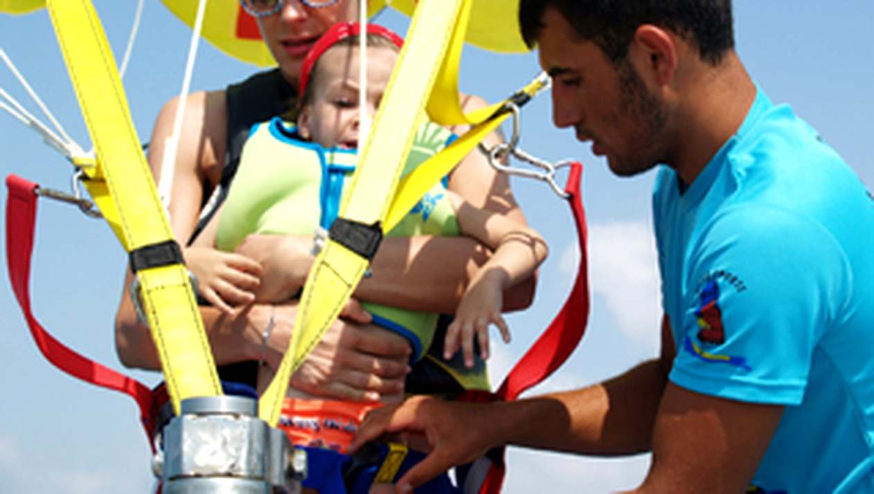 Ca sa nu fie singura in aceasta aventura, a luat-o alaturi de ea pe micuta Ana Cleopatra. La asa mama, asa fiica, pentru ca, desi are doar trei ani, cea mica a zambit pe tot parcursul sesiunii de parasailing si a regretat cand s-a terminat.