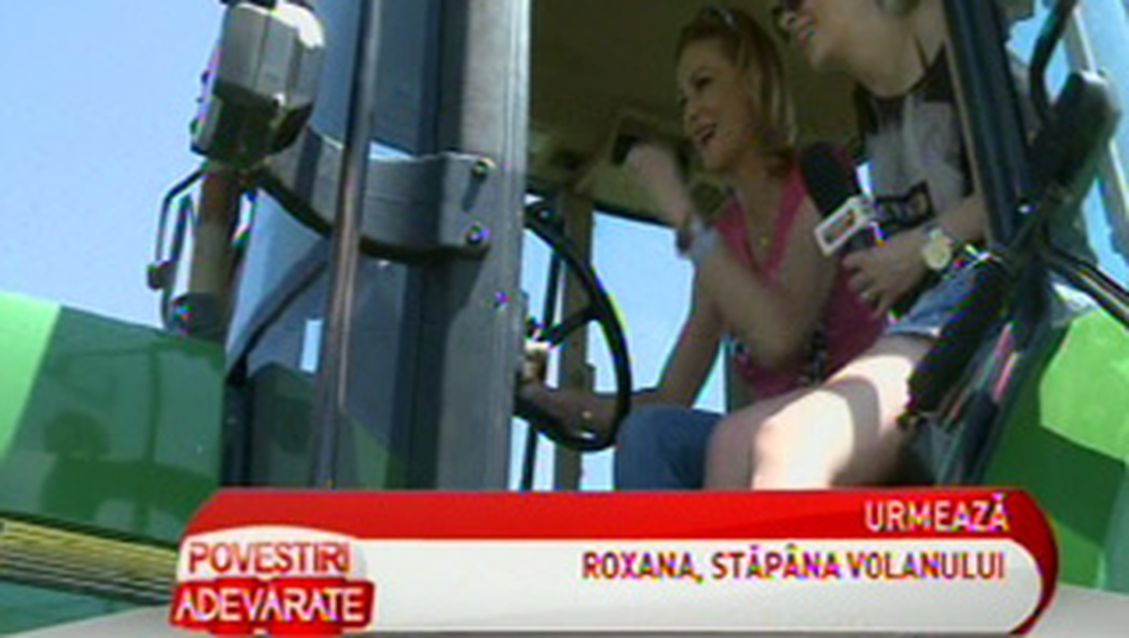 Roxana Ciuhulescu a condus tot ce s-a putut conduce in tara. Ea a experimentat recent sofatul tractorului pe dealurile de pe malul baltii din Comana Cosereni.