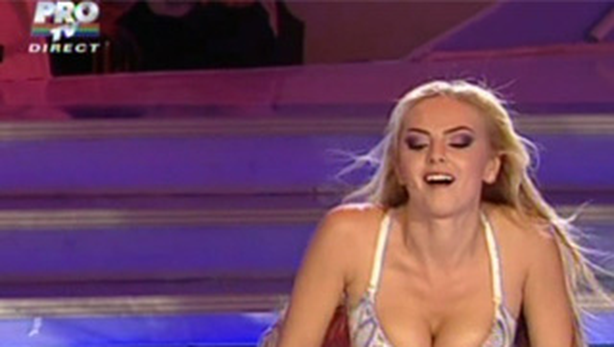 Roxana Ionescu a purtat un costum de cadana, doar cu un sutien in partea de sus.
