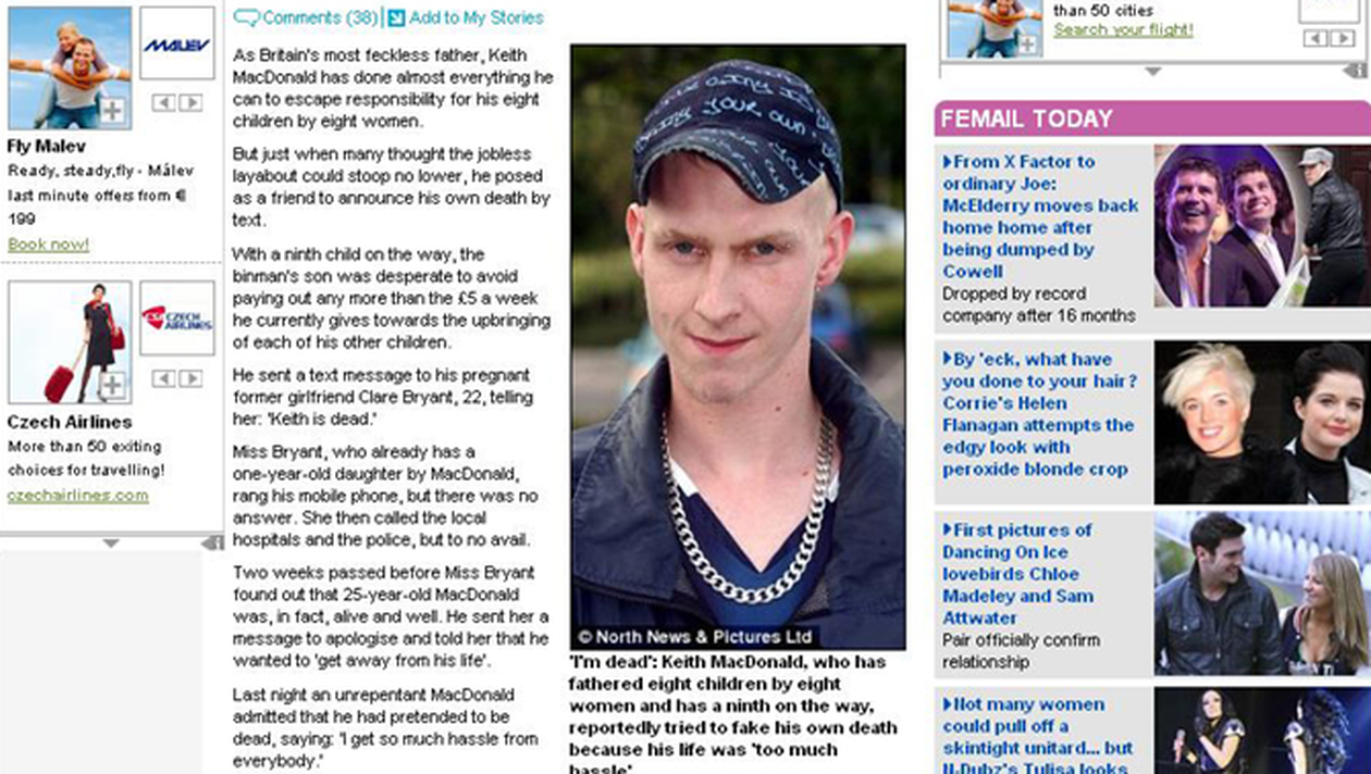 Barbatul din Marea Britanie are opt copii impreuna cu opt femei diferite, iar una dintre ele este de nou insarcinata. Pentru a scapa de responsabilitatea de a plati bani pentru cel de-al noualea copil, el i-a trimis femeii insarcinate un mesaj in care isi anunta moartea.
