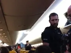 Un bărbat a fost escortat de către poliţişti imediat ce s-a aşezat pe unul dintre locurile din avion, la fel precum ceilalţi călători, aşteptând să fie anunţată decolarea.