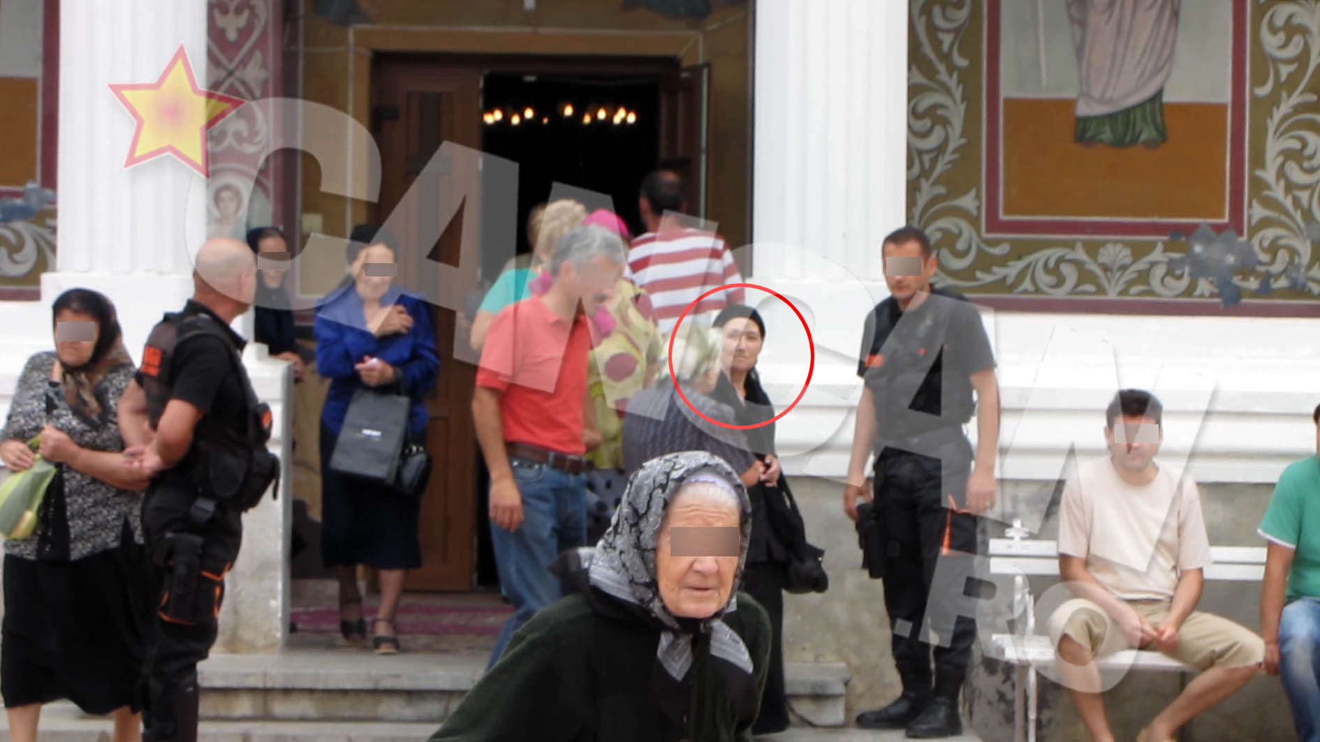 Cele trei femei au fost aduse la biserica de un sofer, iar dupa ce au intrat in curtea lacasului de cult, doi body-guarzi nu le-au scapat nicio clipa din ochi, avand grija sa nu fie deranjate de nimeni.