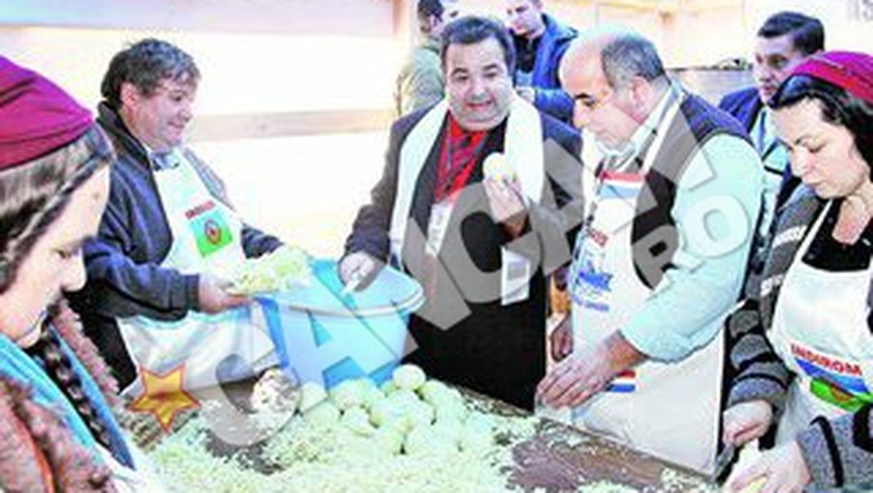 Aproape 300 de romi s-au intalnit, ieri, la Sibiu, in cortul ridicat special in curtea Staborului. Au venit pentru Congresul Asociatiei Romilor Nomazi si Caldarari, dar si ca sa intre in Guinness Book. Au batut recordul cu cel mai mare sahaimas gatit vreodata, care a cantarit o tona.