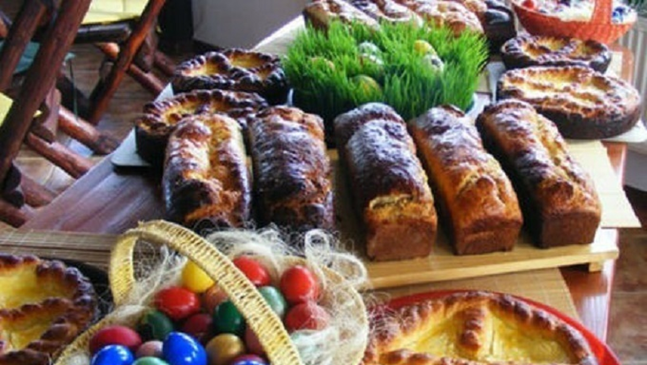 Sâmbătă seara, înainte de slujba de Inviere, gospodinele pregătesc coşul cu bucate, în care se pune un ştergar nou, o lumânare albă aprinsă, ouă, cozonac, pască, o bucată de slănină, zahăr, făină, o ramură de busuioc, un mic miel din aluat copt şi vin, notează crestinortodox.ro.