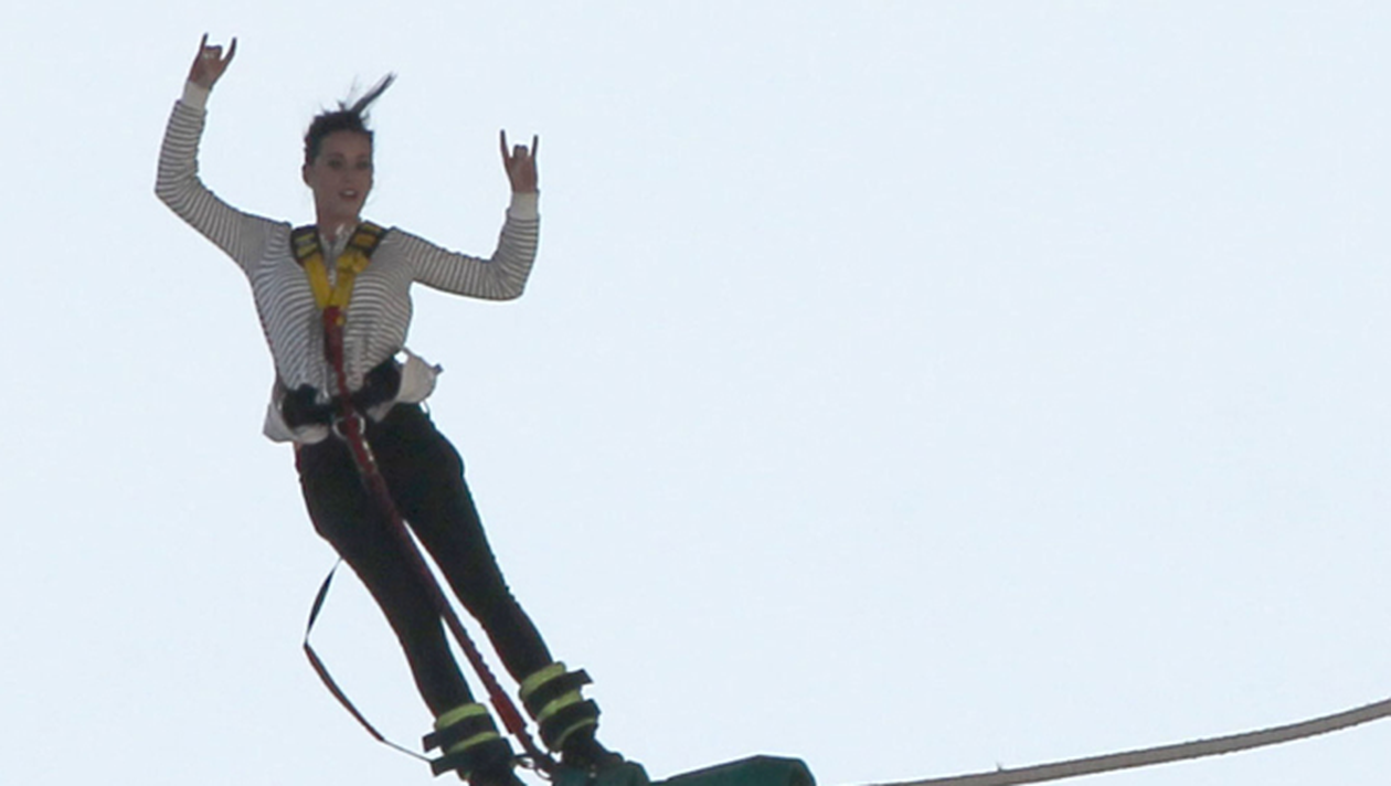 Simpatica artista Katy Perry a profitat de timpul liber de dinaintea unui concert pe care l-a sustinut in Noua Zeelanda nu pentru a face cateva vocalize sau pentru a bea un ceai, ci pentru a face bungee-jumping. Cantareata s-a aruncat de pe un pod, experienta despre care a povestit ca i-a placut la nebunie.