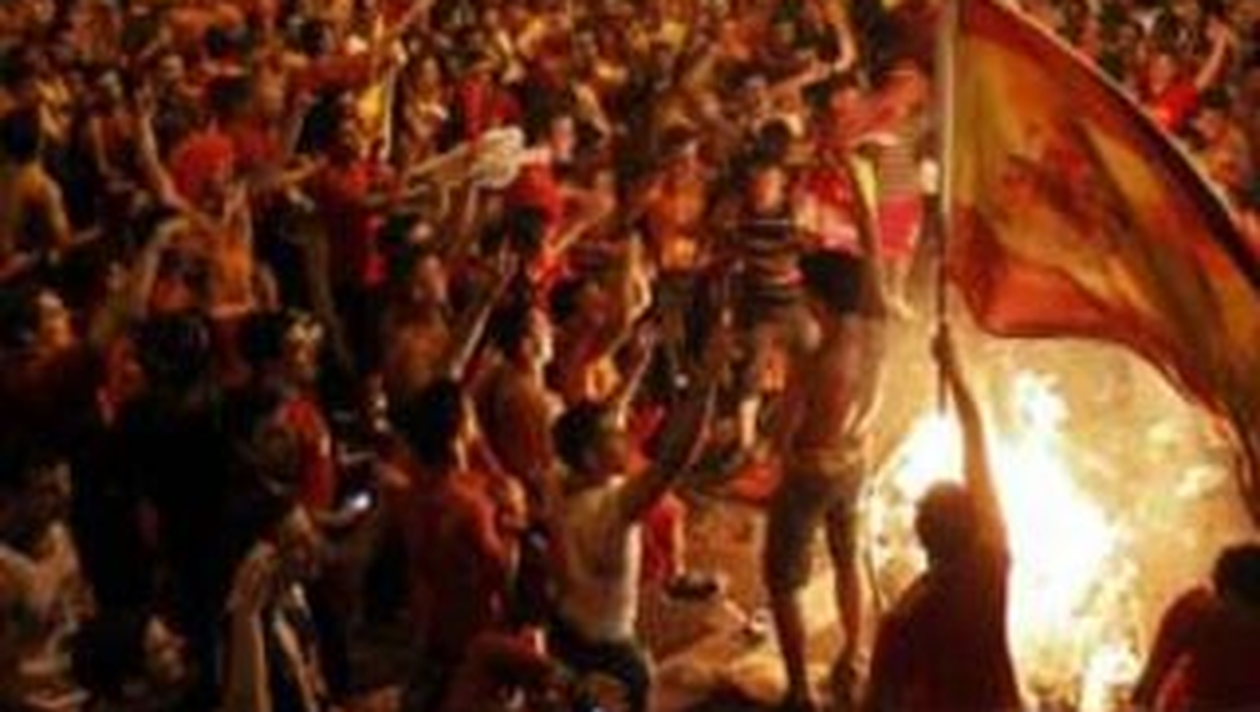 Mii de suporteri cu steaguri in culorile galben-rosu ale Spaniei au iesit pe strazile din Madrid si din principalele orase ale tarii pentru a sarbatori calificarea nationalei lor in semifinalele Campionatului European.