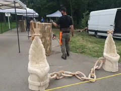 Cei șase artiști veniți din toate zonele țării vor lucra timp de o săptămână, în lemn industrial, cu drujba, la ineditele creații de mobilier urban ce vor îmbogăți Craiova. (NU RATA: Un afacerist din Craiova a plătit 10.000 € pentru o statuie cu propriul chip)