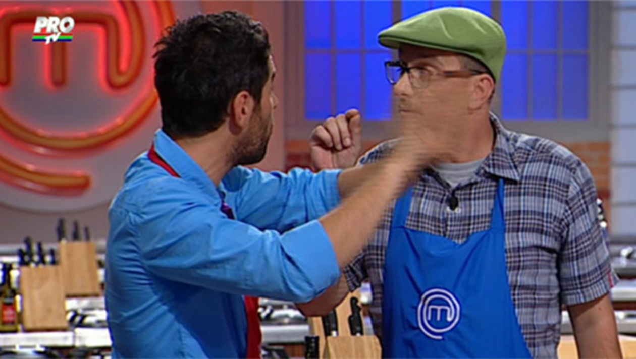 Dom Baxter si jurnalistul Alex Dima s-au certat la cutite in timpul emisiunii Master Chef, de la Pro TV. Ba mai mult, cei doi au fost la un pas sa se ia la bataie, dar, pana la urma, lucrurile s-au calmat.