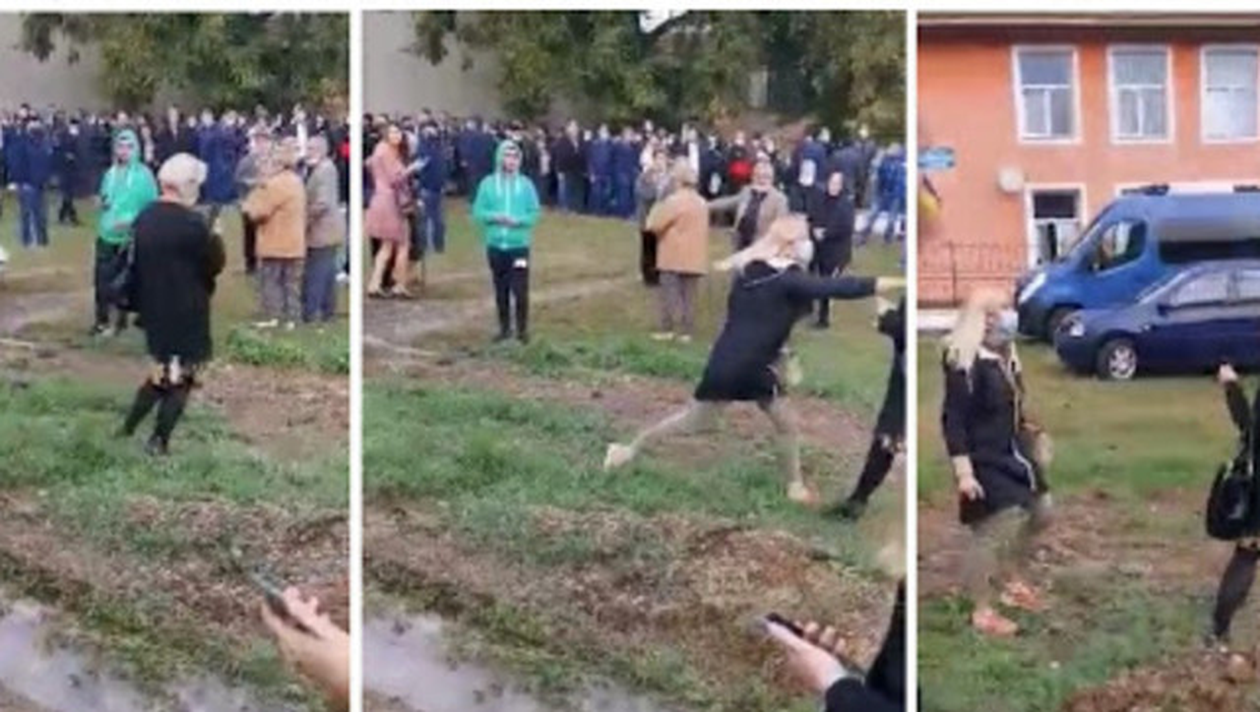Cele două cetățene au început să se îmbrâncească chiar în fața secției de votare, în timp ce persoanele aflate la coadă pentru a vota filmau cu telefoanele mobile. Una dintre cele două femei este soția candidatului PNL din comună.