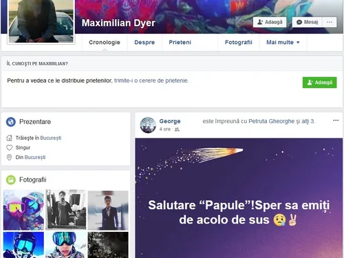 Scandal în văzul tuturor după moartea lui Andrei Gheorghe. George, un prieten apropiat de-al lui realizatorului de emisiuni radio a scris un mesaj emoționant în această după-amiază pe Facebook. Când a făcut publică postarea, el a etichetat mai multe persoane printre care pe Maximilian Dyer, fiul „vitreg” al fostului realizator TV și emisiuni radio, dar și pe mama lui, Petruța Gheorghe. Aceasta din urmă a fost deranjată de faptul că tânărul a folosit un apelativ pe care îl utilizau doar copiii lui Andrei Gheorghe.