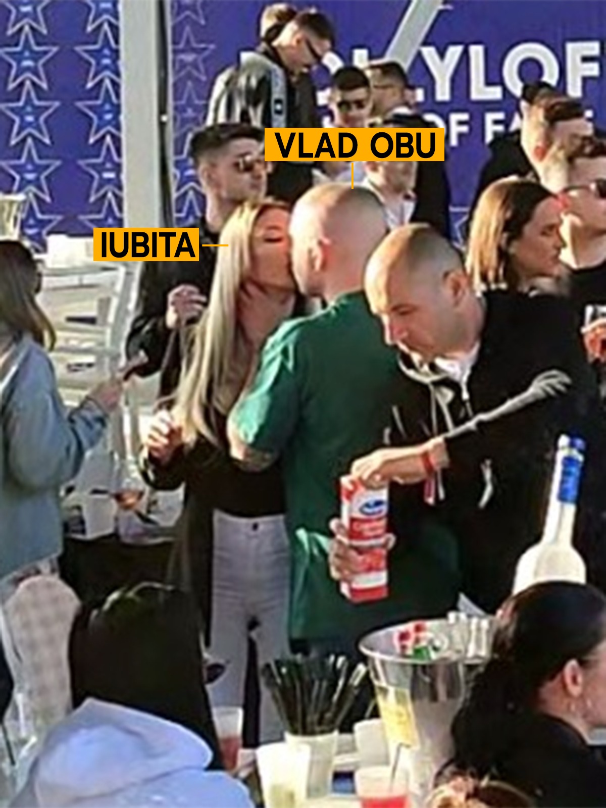 Cu paharul în mână, Vlad a ”vizitat” tot. A conversat cu o blondină, așezată pe scaun, dar vacarmul de la Loft l-a făcut pe ”Videochatist” să-i șoptească la ureche ce are de spus. În câteva rânduri. A trecut pe la fiecare, a ciocnit, dar la ultima ”stație”, iubita lui, care dansa în picioare, la doi metri de masă. Țintă către ea s-a dus, și cu toate că încearcă să fie cuminte în ultima vreme, tot a scăpat un gest care îi trădează agresivitatea! Acesta i-a băgat mâna în gât femeii și a sărutat-o cu patos. Vezi doamne, bad boy cu sentimente. Ea i-a răspuns, măgulită de gestul iubitului celebru în arta tatuajelor cu numele lui, pe care le-a făcut partenerelor care i-au trecut prin pat (Totul AICI).