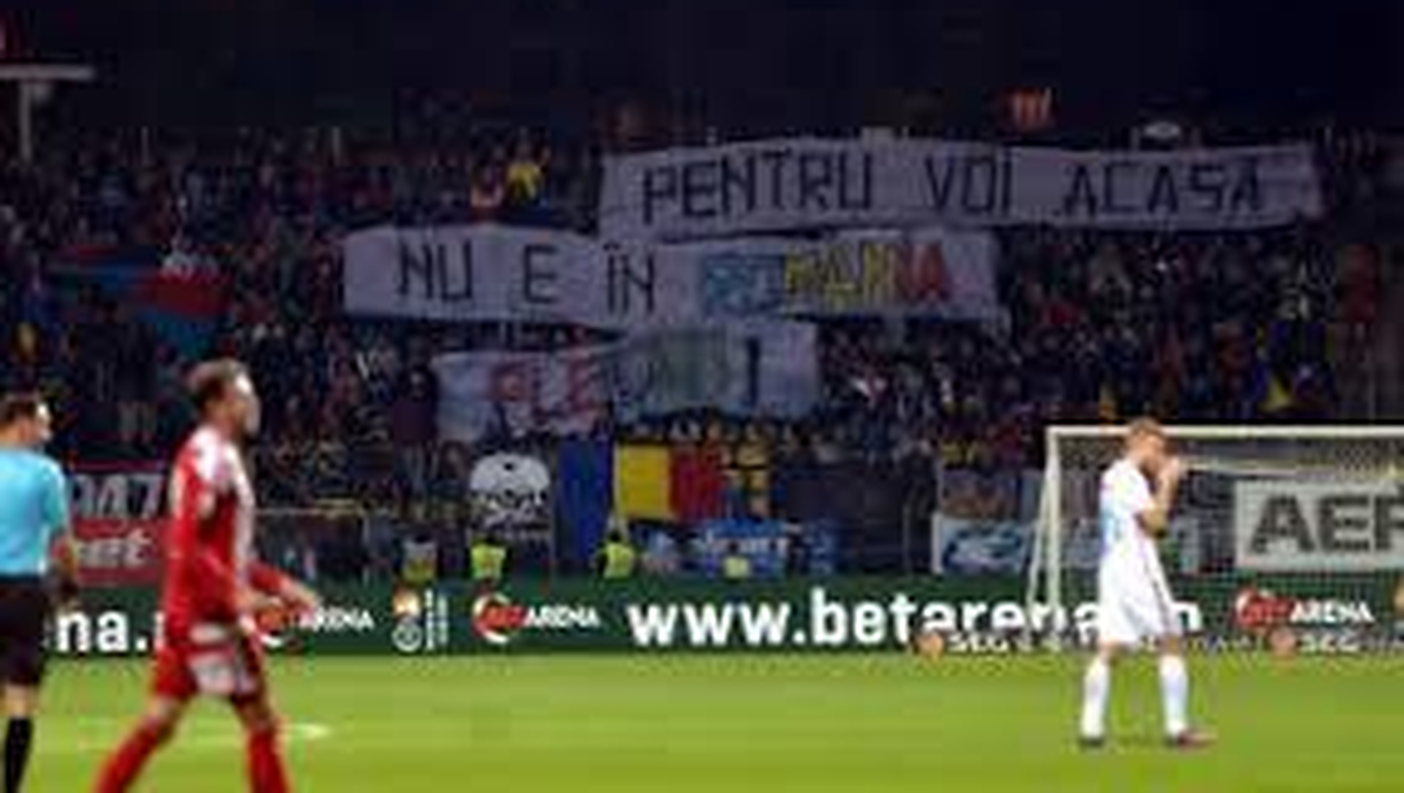Pe lângă celebrele scandări xenofobe, fanii FCSB-ului au cântat şi cântece patriotice şi au afişat şi numeroase steaguri ale României.