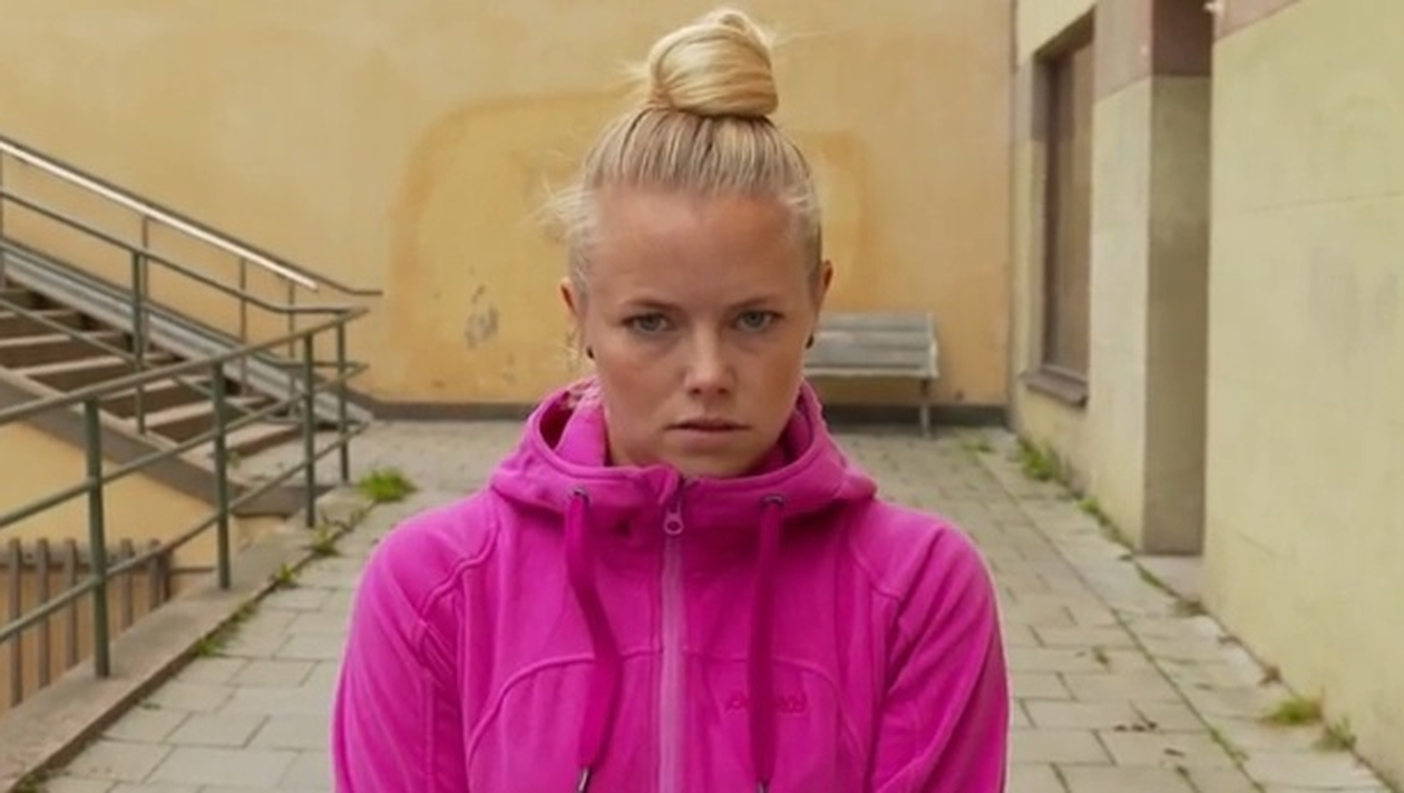 Trei tineri din Suedia par sa se distreze de minune in curtea unui bloc de locuinte.
