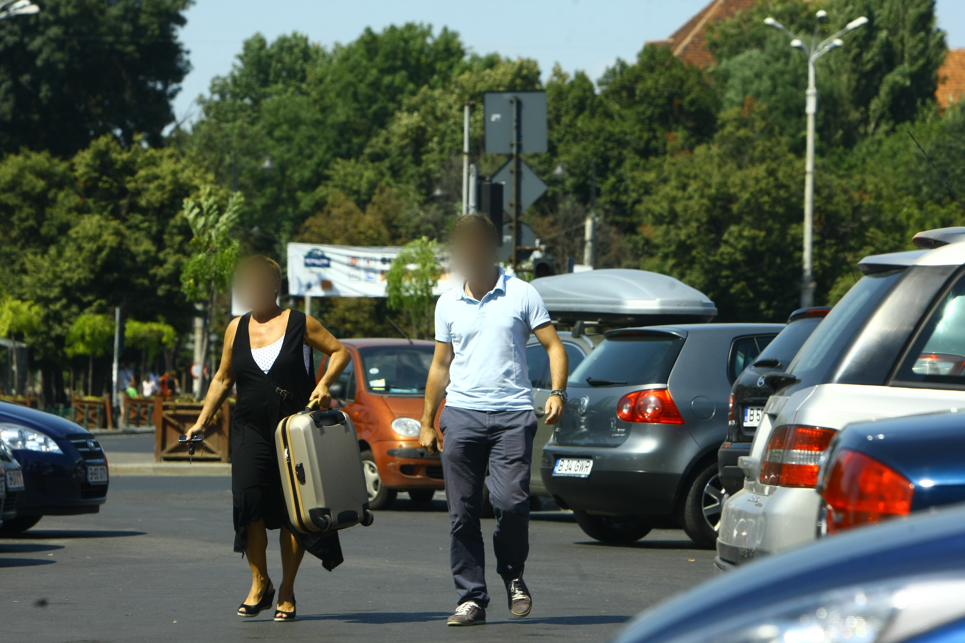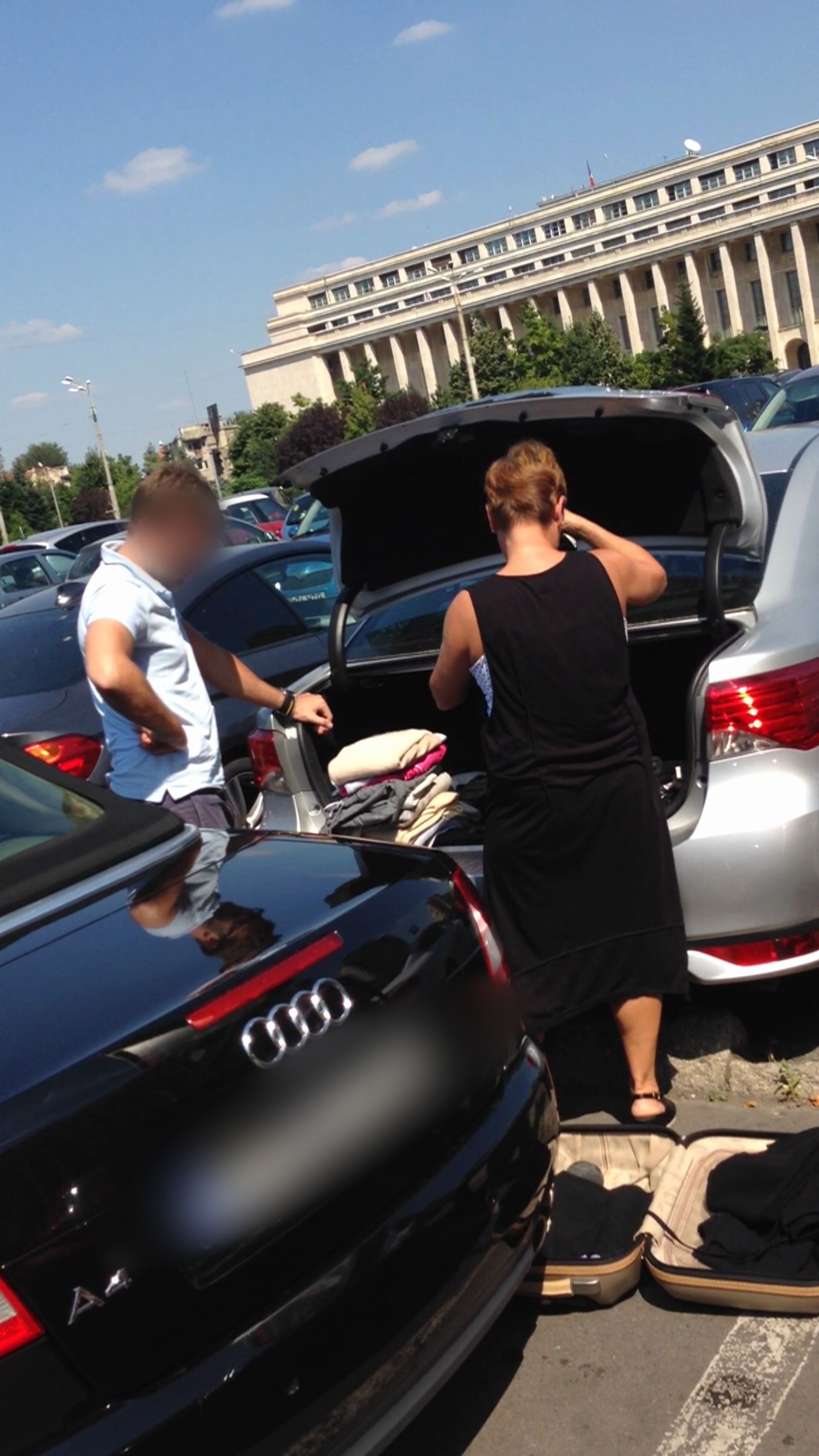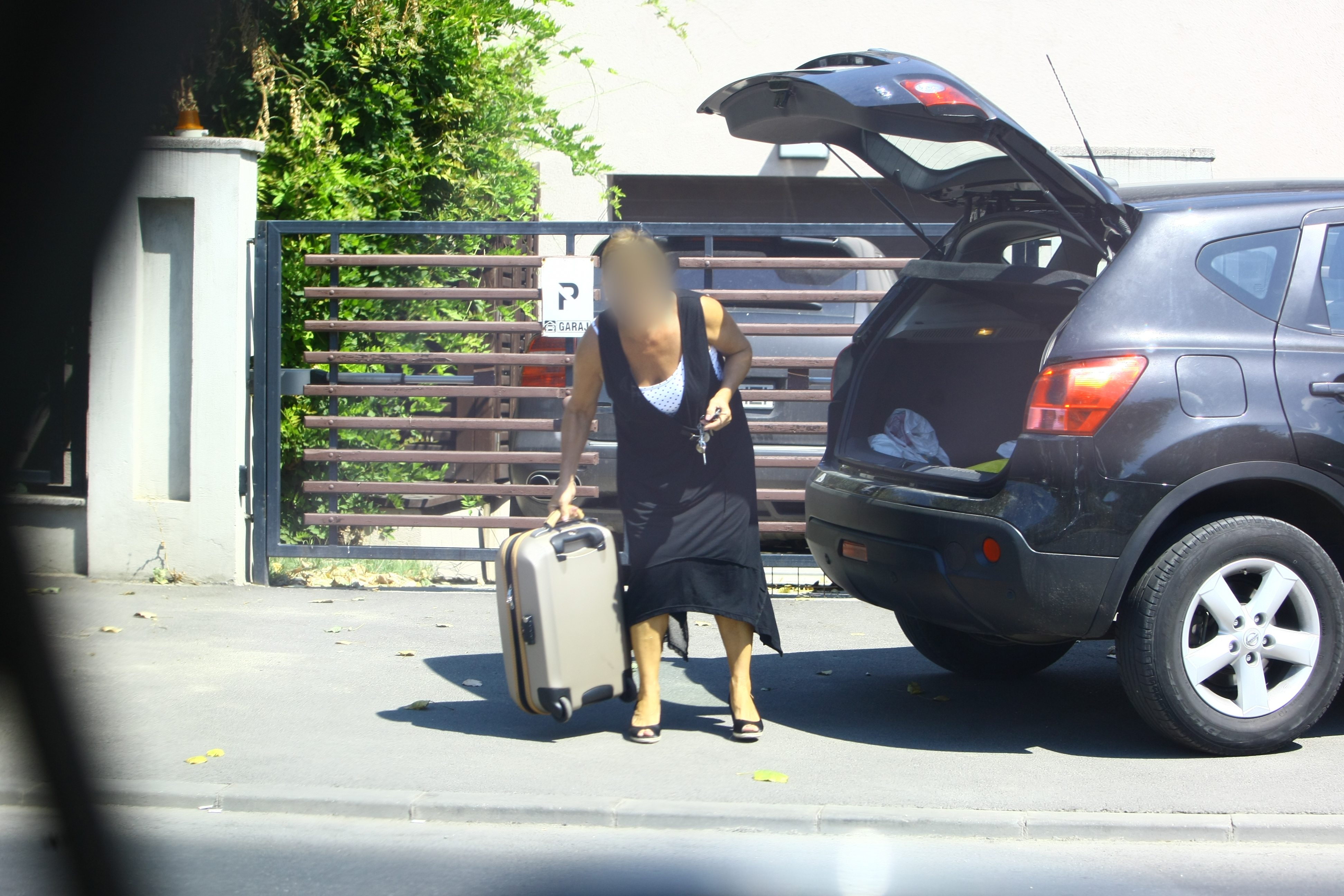 Dupa ce a zabovit o buna bucata de vreme, a iesit tragand dupa ea un geamantan, pe care l-a incarcat in portbagajul unui SUV.