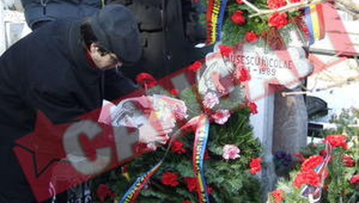 STRANIU. Presedintelui noului PCR pare ca i-a crescut un megafon in gura PROSTIE. Imaginea lui Iisus din filmul lui Mel Gibson, asociata cu cea a lui Ceausescu Nostalgici. Si anul acesta, de ziua lui Ceausescu, zeci de persoane s-au strans la presupusul loc de veci al dictatorului pentru a se tangui in fel si chip, dar si pentru a trece in revista marile realizari ale „iepocii de aur” Razvan Mateescu Puteti viziona aici imagini video Pentru acesti oameni, cei 18 ani de democratie nu inseamna absolut nimic. Vin la mormantul tiranului, care a terorizat 22 de milioane de oameni, sa-l planga, sa-i puna flori si lumanari, calcand cu nesimtire in picioare locurile de veci din apropierea celui adorat de ei. Un teatru sinistru ce se repeta de doua ori pe an in cimitirul Ghencea, a doua oara de Craciun, cu personaje imbracate ponosit, prin care urla vocea trecutului „glorios”, cand copiii erau hraniti cu ceai in maternitati, zeci de biserici cadeau sub lama buldozerelor, in macelarii se gaseau doar carlige metalice, iar in cele doua ore de televiziune pe zi, numele cizmarului analfabet si al sotiei sale, absolventa de patru clase primare, erau pomenite in fiecare minut. La mormantul lui se citesc poezii naive, cu versuri de tipul „Scoal’ nea Nicule din morti/ Si pune-i la zid pe toti”, in aplauzele celor prezenti. „Voi, tinerii, habar n-aveti cini ie Ceusascu!”, striga, scuipand in jur, un mos. „Va spui io: ie al mai mare dantre domnitori! Pentru noi, oamenii muncii cari am construit socialismu’ si tara, iel n-a murit. Ceausascu n-a murit, m-auziti?!” Foto: Razvan Mateescu