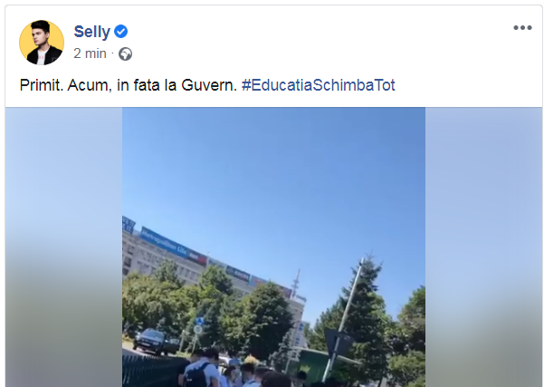 Selly avea să aprecieze atitudinea elevilor care au venit în fața Guvernului, practic, la îndemnul lui. Vedeta a urcat filmulețul pe pagina de socializare.
