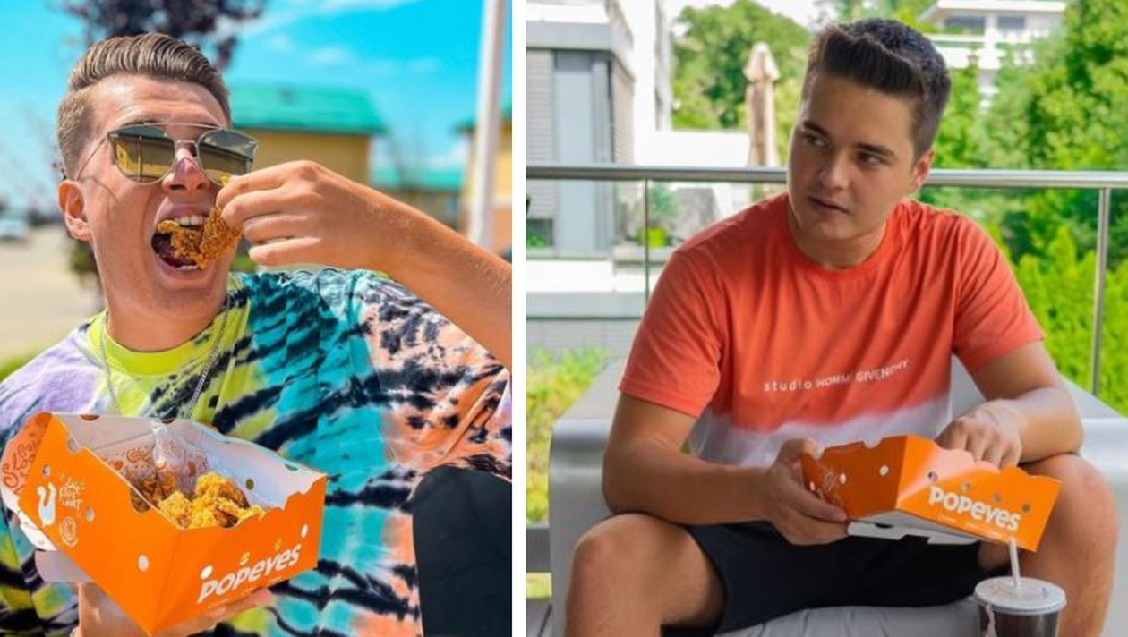 „Am venit să mai fentez foamea şi astăzi, să mănânc ceva aici că e bună mâncarea. E cel mai bun pui pe care poţi să îl iei în România. Îmi plac foarte mult cartofii cu şuncă pe deasupra”, ne-a declarat tânătul vlogger.