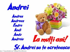 ”Sper ca ziua numelui tău să îţi aducă multe motive de a sărbătorii. La mulţi ani, Andrei/ Andreea!”