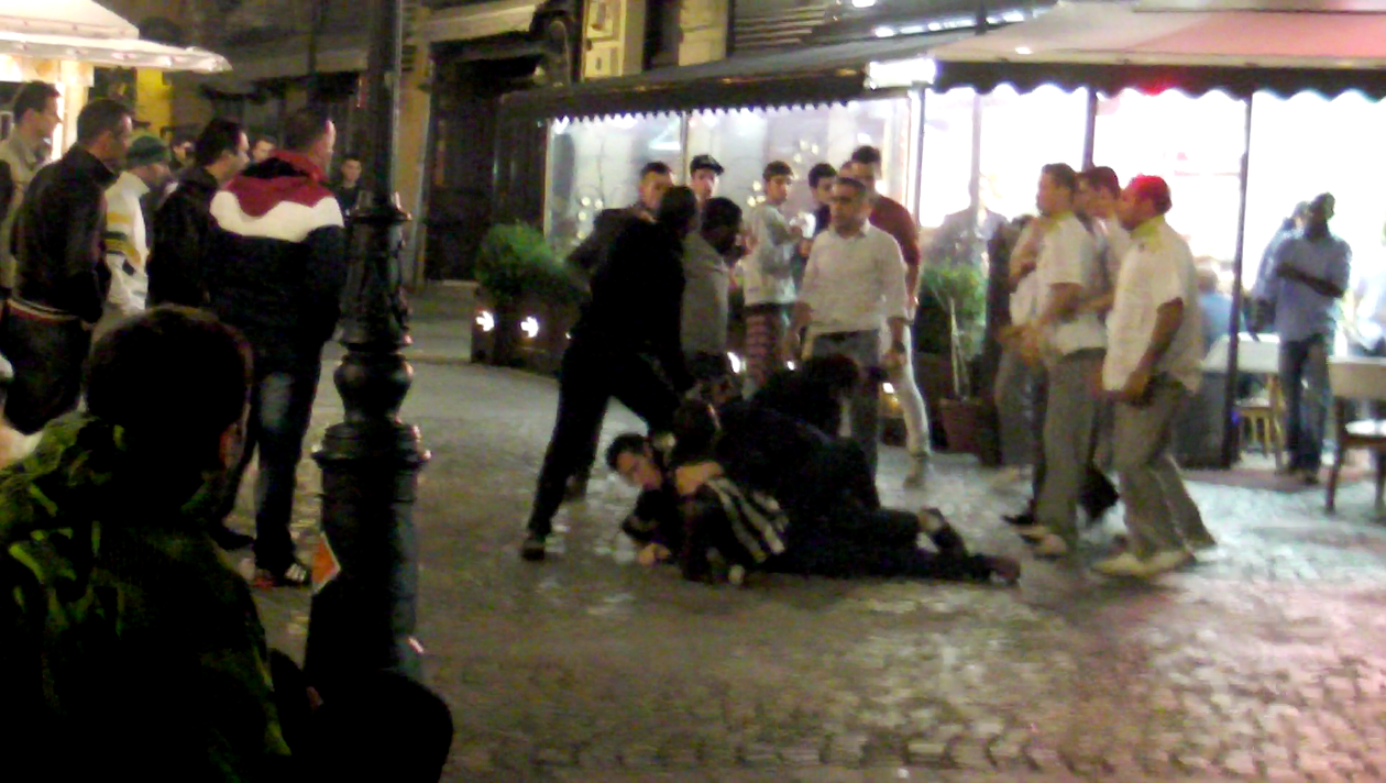 Shaorma cu de toate: bataie, injuraturi si politie! Imagini terifiante cu un scandal care a explodat in Centrul Vechi!