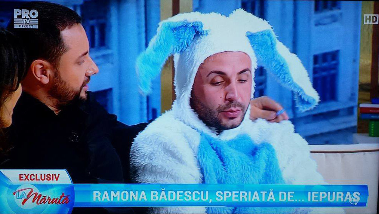 Ramona Bădescu a fost invitată luni după amiază ”La Măruţă” unde a tras o sperietură pe cinste. Realizatorul TV a vrut să îi facă o glumă şi a chemat un figurant îmbrăcat….într-un costum de iepure!