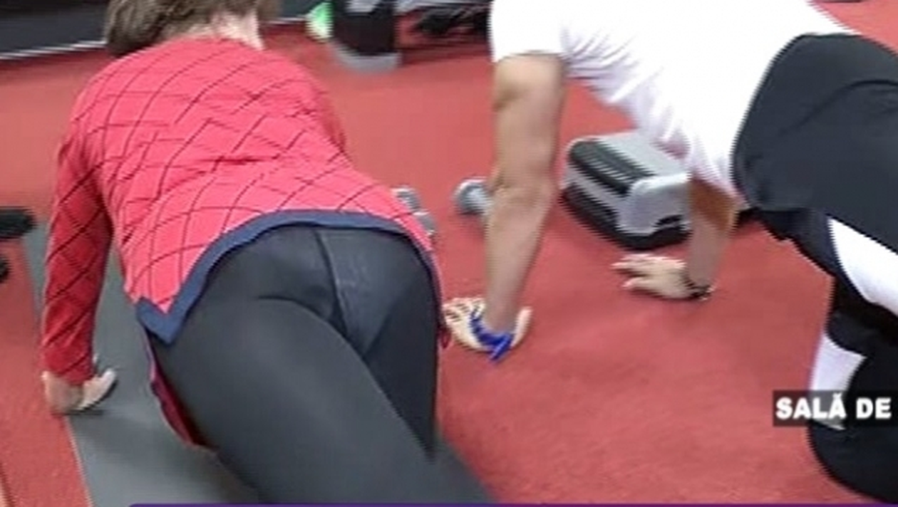 Îmbrăcată în colanţi transparenţi şi o bluză sport, Saveta Bogdan a uitat de vârstă, s-a aşezat în patru labe şi a început să execute cu conştinciozitate exerciţiile indicate de antrenor.