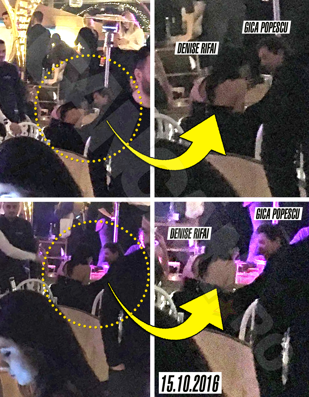Poate cel mai „high” club de noapte din Bucureşti. Aproximativ miezul nopţii. Denise Rifai este o clientă a casei. Vine şi dansează + bea des aici. Tot timpul cu prieteni. Sâmbăta aceasta doar cu o prietenă. La diferenţă de sub un minut în club intră şi Gică Popescu cu câţiva prieteni. Culmea, ce potriveală, mesele aproape lipite.