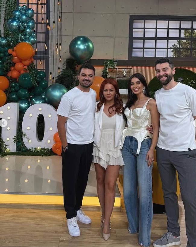 Bogdan Ciudoiu, Lili Sandu și Shurubel alături de Andreea Caranda, producătoarea emisiunii „Vorbește lumea”