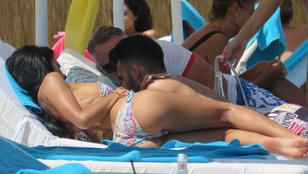 Tânăra nu a pierdut timpul la plajă şi a ”experimentat” din plin poziţii care mai de care mai erotice. Conştientă de atuurile sale fizice şi parcă hotărâtă să-l dea gata pe june, Alexandra s-a perpelit pe şezlong, iar când a simţit că pierde teren s-a ridicat şi şi-a etalat trupul de invidiat pe sub nasul iubitului.