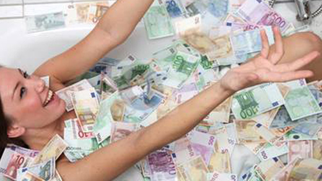Intr-una dintre imagini, fata apare in timp ce face baie intr-o cadă plină cu bani, iar asta a atras atentia autoritătilor.