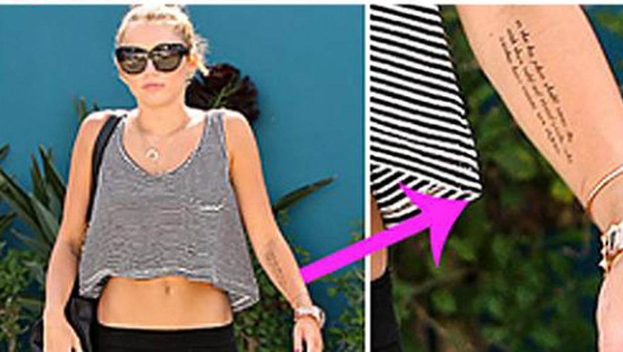 Miley Cyrus, caci despre ea este vorba, este innebunita dupa tatuaje, recent facandu-si-l pe cel de-al 16-lea. Nu este vorba despre un tatuaj oarecare, ci despre un mesaj scris pe trei randuri pe mana stanga. Miley a ales sa-si tatueze pe brat un citat dintr-un personaj celebru: al fostului presedinte al SUA Theodore Roosevelt. „Si locul lui nu va fi niciodata printre acele suflete reci sI retinute care nu cunosc nici victoria, nici infrangerea” – este scris pe bratul lui Miley Cyrus.