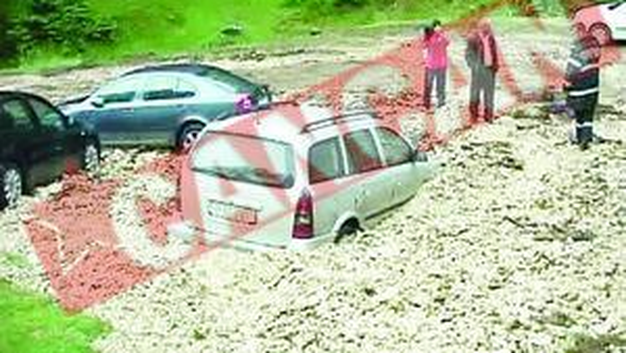 EFORT. Pompierii i-au ajutat pe turisti sa-si recupereze autoturismele Potop. Cateva case au fost afectate de ploaia torentiala care a cazut timp de doua ore la Zarnesti Cristina Baciu Natura s-a dezlantuit din nou, ieri, in judetul Brasov. O rupere de nori in apropierea orasului Zarnesti a provocat o alunecare de teren, care a avariat mai multe masini. Turistii care si-au lasat autoturismele la poalele muntelui si au plecat in drumetie au constatat ingroziti, la intoarcere, ca masinile le-au fost blocate de bolovani adusi de ape, de pe versanti. „In urma viiturii, mai multe masini au fost blocate in namolul si bolovanii cazuti de pe munte. Pentru a debloca autoturismele a fost necesara interventia pompierilor”, a declarat primarul din Zarnesti. Ploaia torentiala a durat mai bine de doua ore. Locuitorii din zona spun ca, in doar cateva minute, apa a inceput sa aduca, de pe munte, bolovani si pietris. Cateva gospodarii au fost afectate, dar pagubele nu sunt foarte mari.