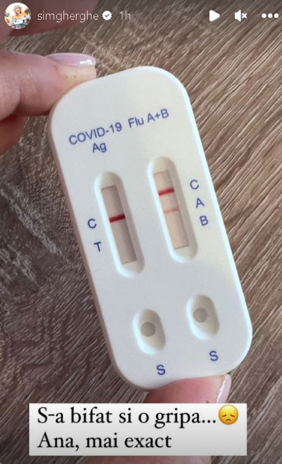 Simona Gherghe pare să nu fi avut sărbători prea liniștite. Activă pe rețelele de socializare, recent, aceasta a publicat o fotografie cu un test pozitiv de gripă A+B. Aceasta le-a spus prietenilor virtuali că Ana, fiica cea mică, a avut stări de rău, febră și chiar a lipsit de la grădiniță.